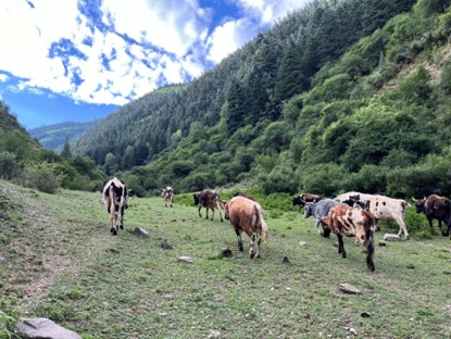 それから、私は時には、家事の手伝いとして放牧に行くこともあった。十数頭の牛を山の奥に追って行ったら、そのあとは自由時間だ。私の調査資料の多くは山にいたときに取ったものだ。単語の聞き取りや、物語の書き起こしなど、私は自然に囲まれながら作業を進めていった。