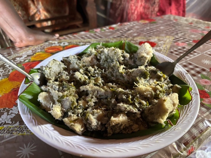協力者の生まれ故郷では自然な会話を録音しに行った。ここではエンセーテから作られたモーサという食べ物をいただいた。ジンカからさらに高地に行くとエンセーテ、通称偽バナナというエチオピア南部に独特の食用作物が生い茂っている。エンセーテとは木がバナナに似ており、しかし実ではなく巨大な根っこを可食部とする。ジンカでは主にインジェラという主食が一般的だが、少し標高が増した地域ではこのエンセーテがよく食べられている。エンセーテの食べ方は澱粉質を乳酸発酵させてパンのようにして食べるコチョと、野菜や豆と一緒に芋よろしく蒸して食べるものの2種類に大別される。後者をアリ語でモーサと呼ぶ。モーサは少し硬くて繊維質なまさに芋然としており、アリ人はインジェラよりもこちらを好む。